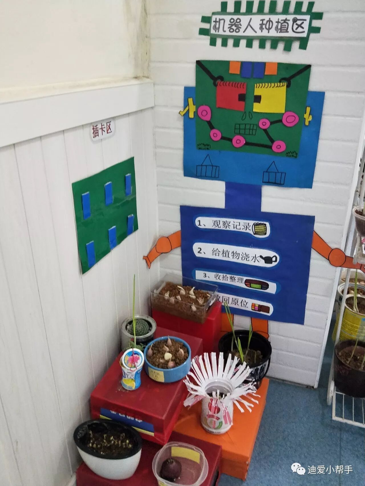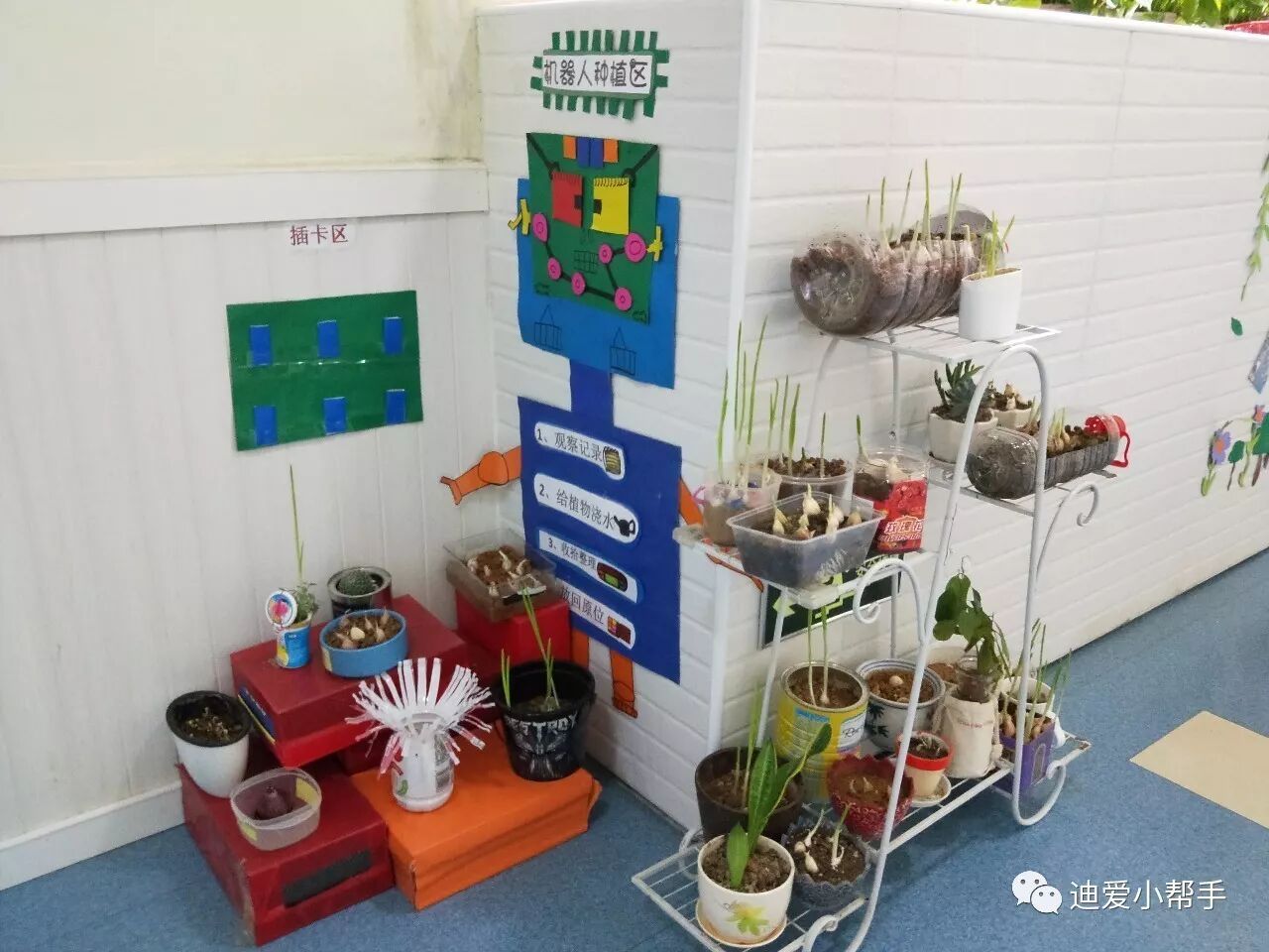 “我们把植物带到幼儿园一起装扮班级的植物角,美美哒!我们每天早上都会观察它们有木有长大、发芽?相信在我们的精心照料下,植物宝贝一定会快快长大。”