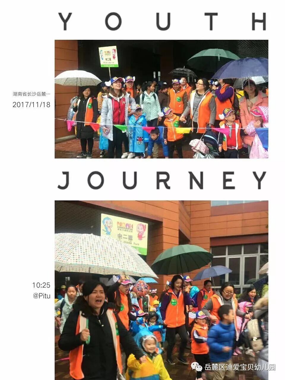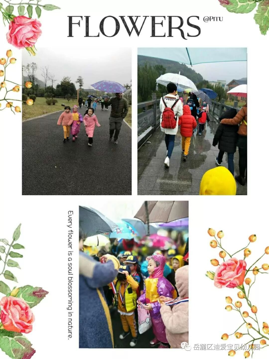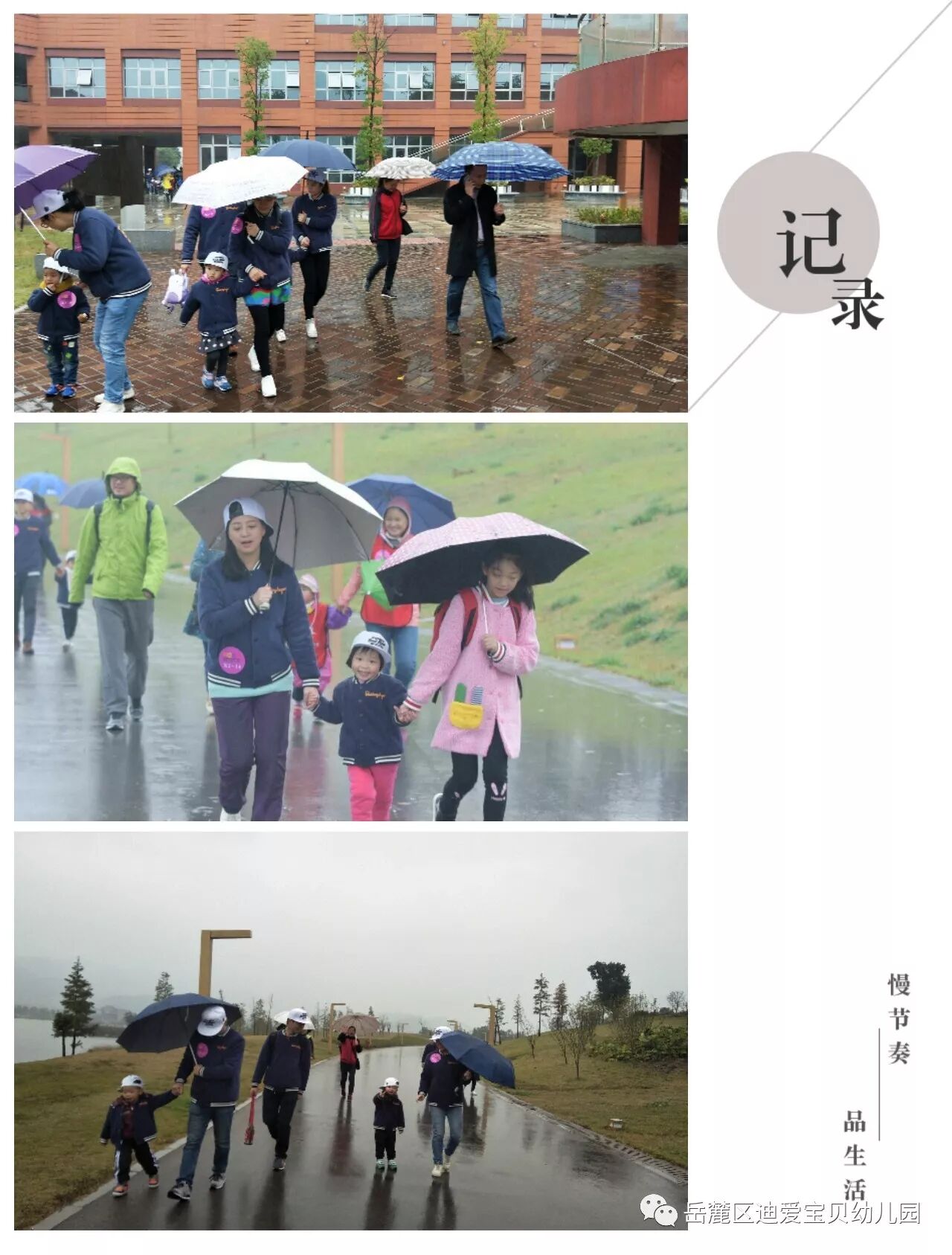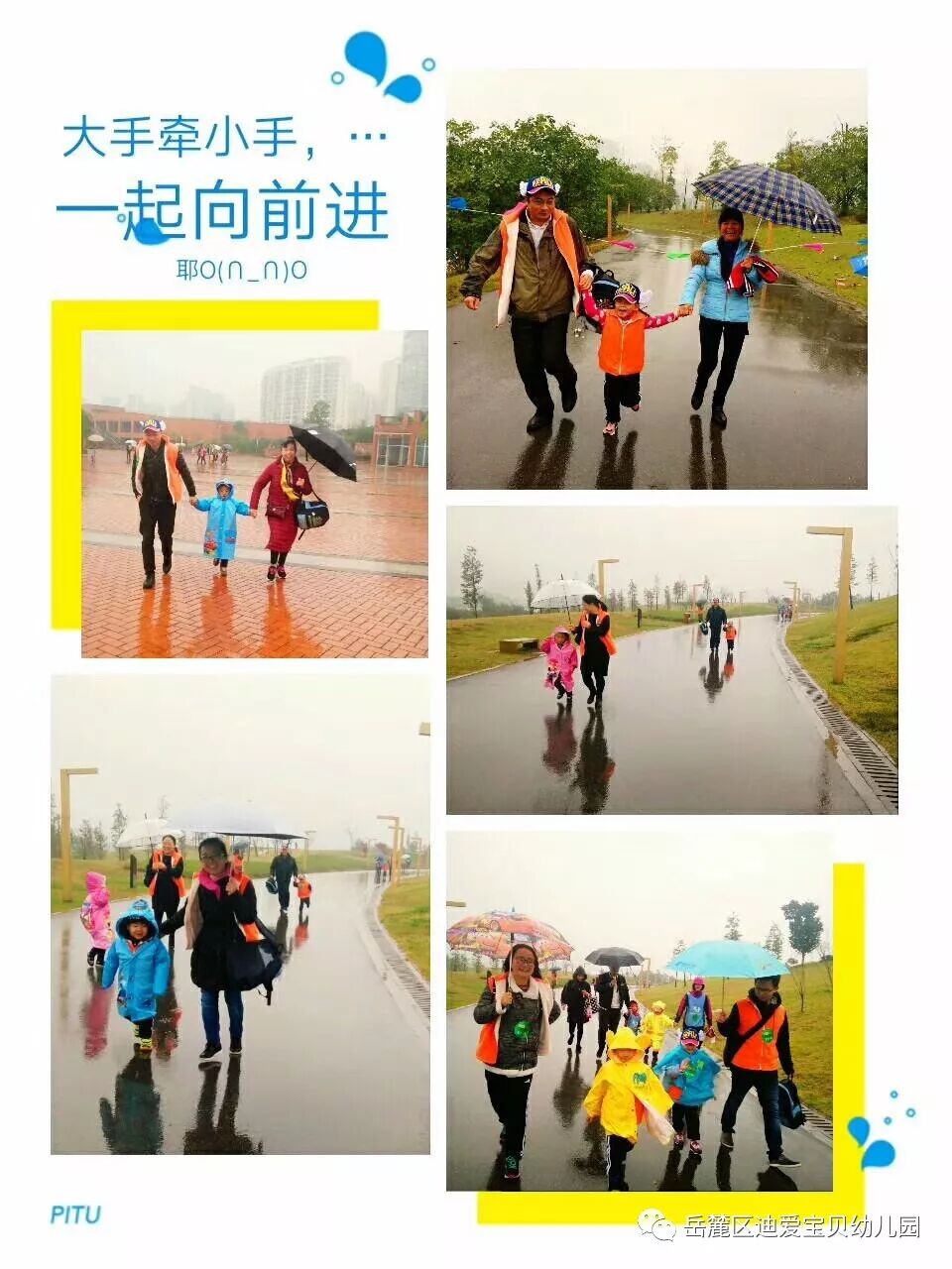 孩子们,穿上小雨衣,行走和奔跑在路上, 通过努力和坚持,他们到达了胜利的终点,赢得了胜利的奖牌。她们勇敢、乐观、坚强,相信未来的她们也将能战胜自我,不怕困难,勇往直前的去面对未知的世界,感受世界的美好。
