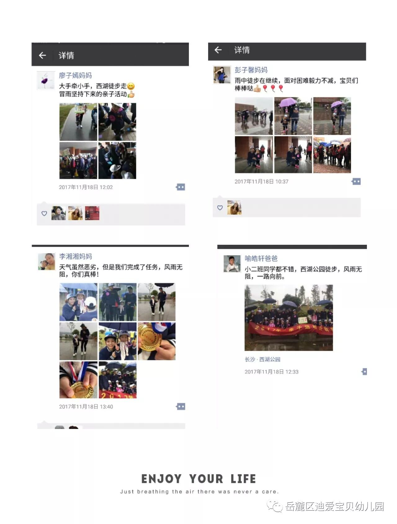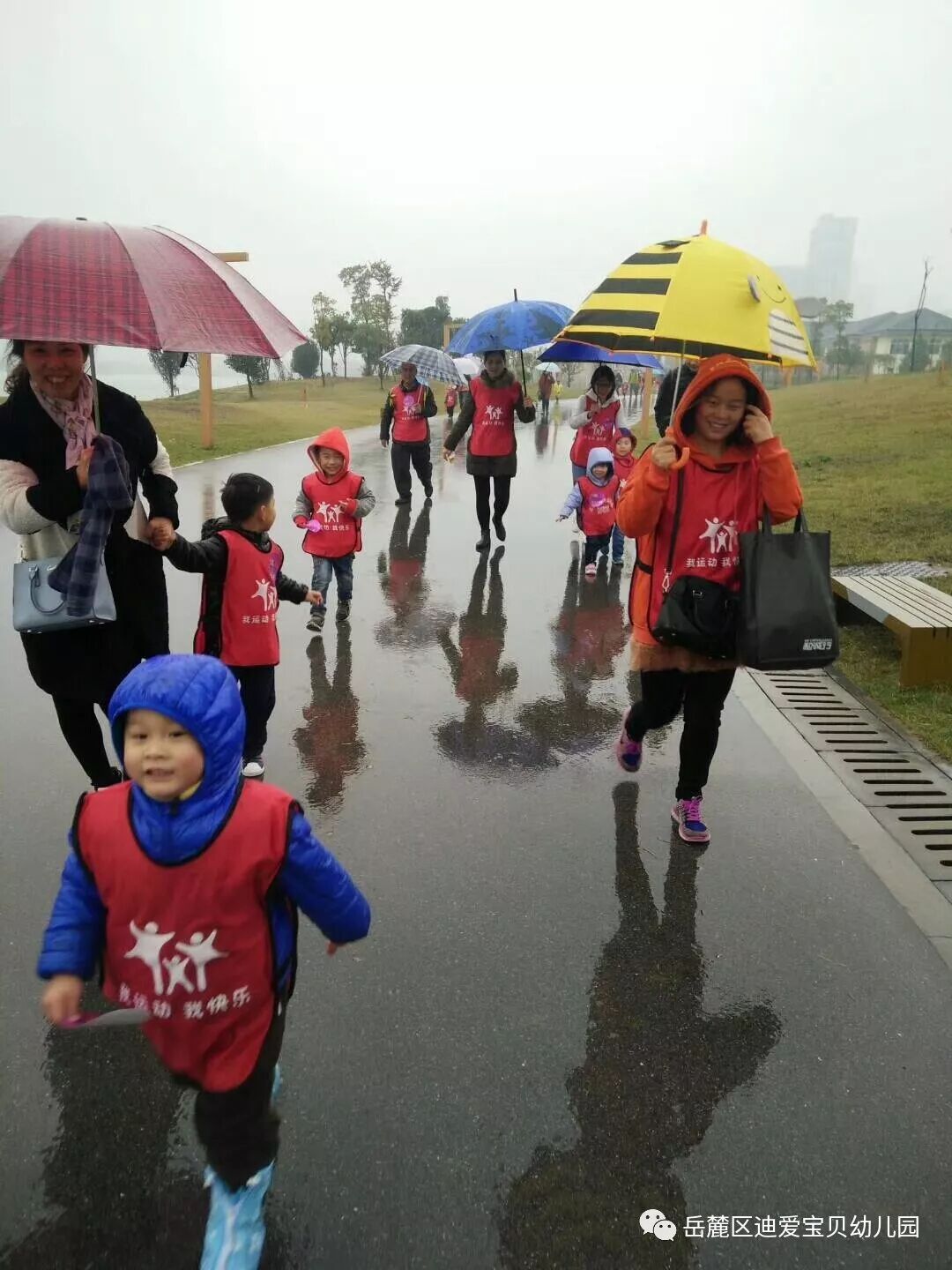 每一场活动的背后,方案不断的修改,细节不断的加强,迪爱全体教师,齐心协力,全力以赴,风雨中,鼓励着孩子们不断挑战自我,感受着孩子们获得金牌的喜悦,骑着自行车围湖巡查安全,她们全然忘了自己已经淋湿......脸上一直挂着幸福的笑容。只为给家长和孩子最好的体验,最大的收获。