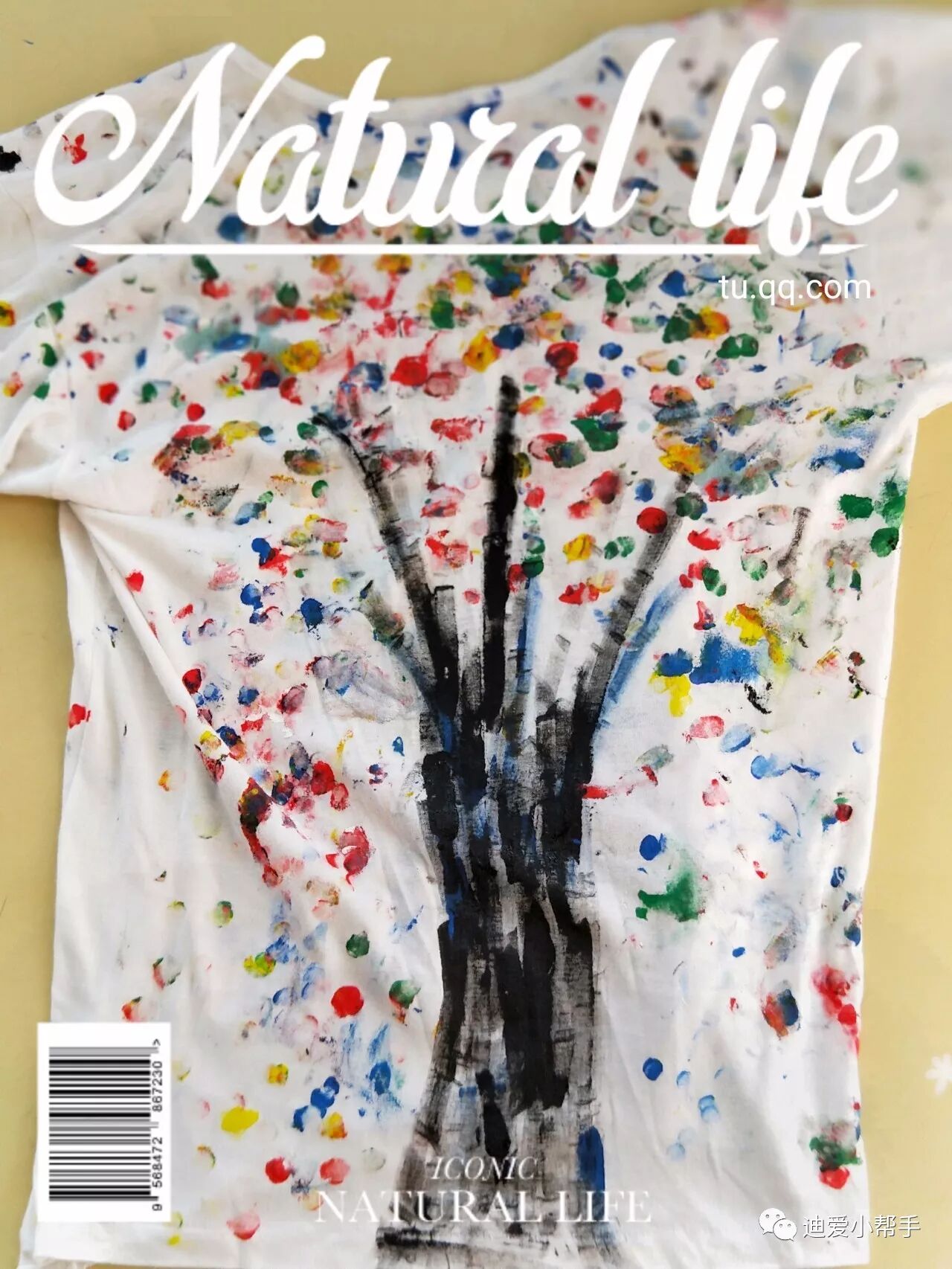 手指轻轻蘸颜色,用点力气印一印,衣服树叶出来啦,色彩干净又美丽。