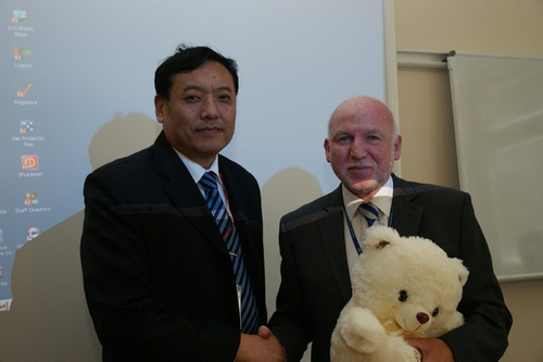 校长与英方学校校长互赠礼品